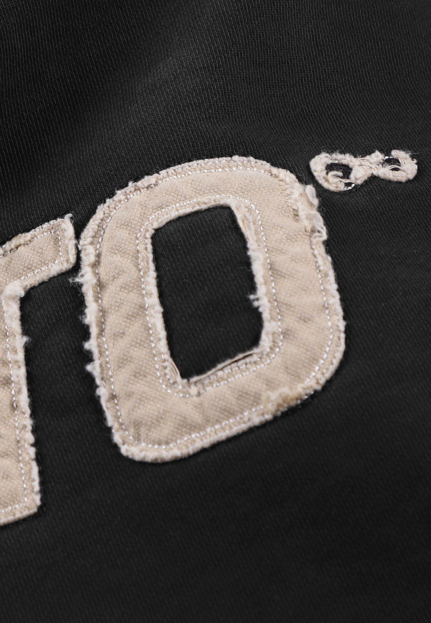 • Na przodzie aplikacja z płótna, wykończona surowym szwem