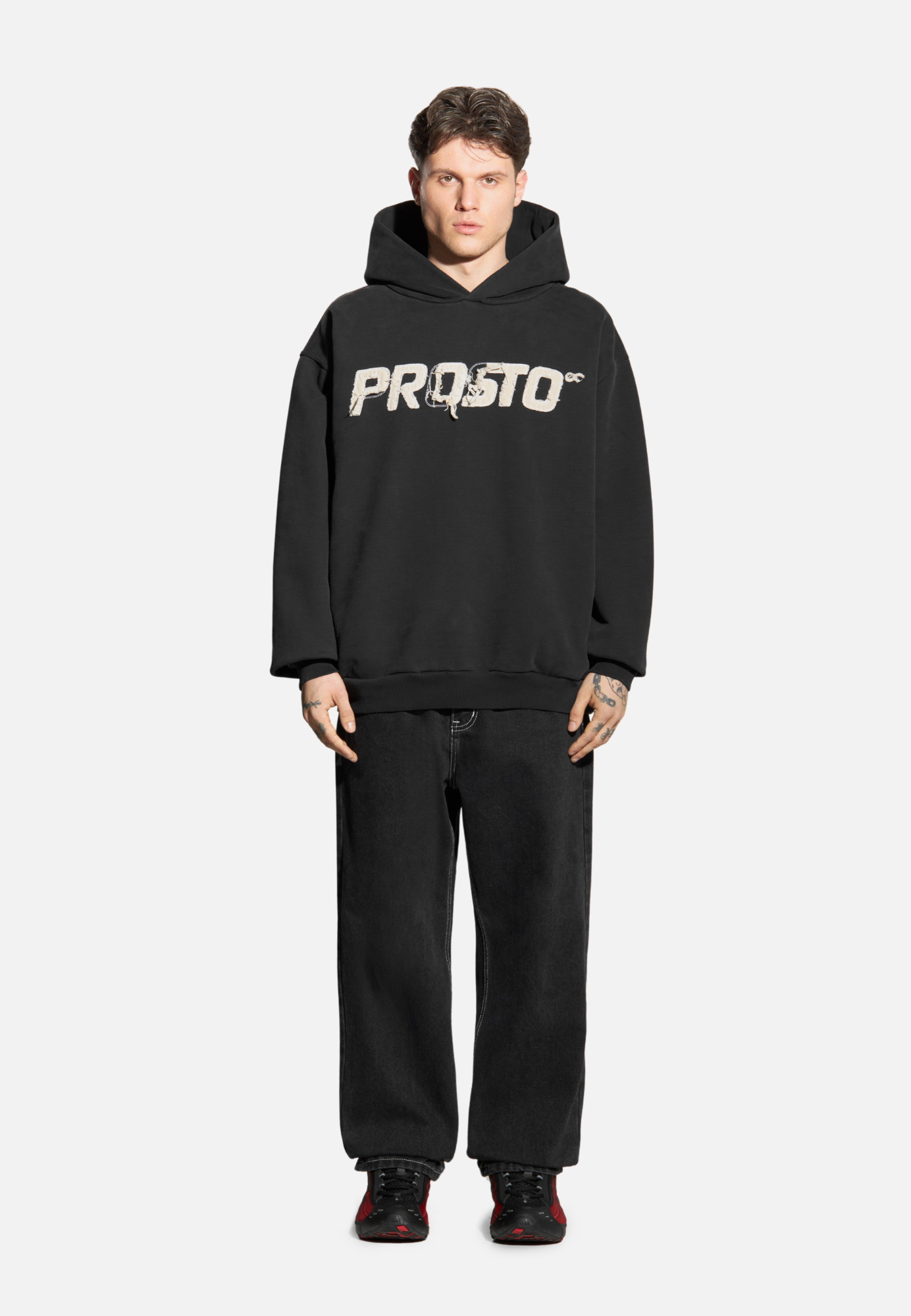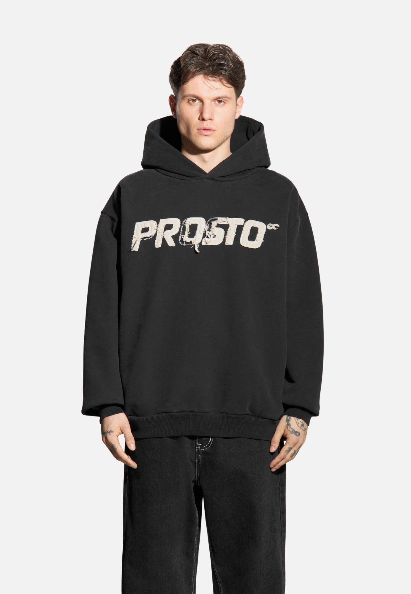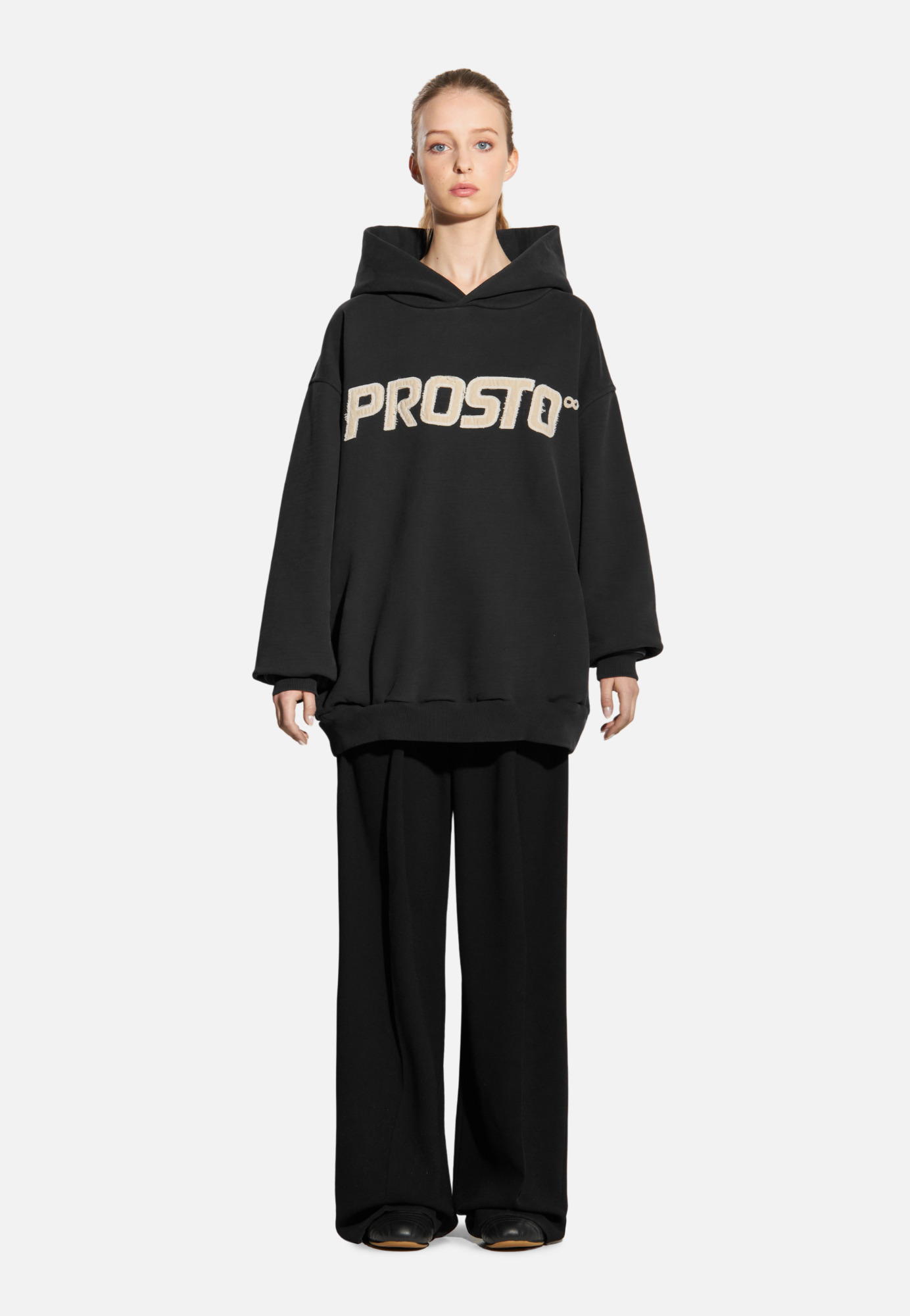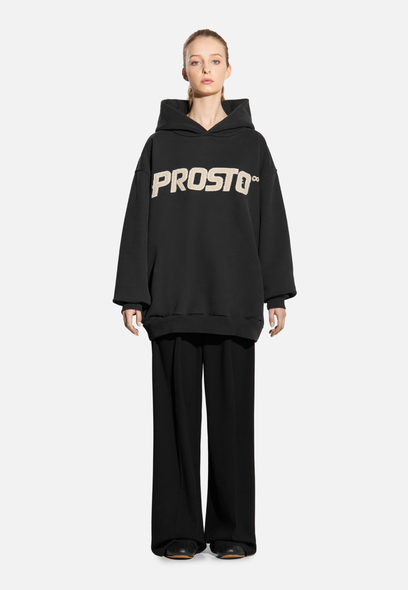 Bluza z kapturem z kolekcji Infinity. Uszyta w 100 % z diagonalnej bawełny o gramaturze 500 g/m² — masywna i solidna. Logo Prosto zostało naszyte z postrzępionego płótna i wykończone surowym szwem stebnówkowym. Obok niego subtelny znak Infinity, nawiązujący do dziedzictwa marki. Do tego dochodzi prawie 1000 km podróży i wieloetapowy proces prania przemysłowego, który nadaje ubraniu miękkość i efekt znoszenia. Efekt „washed” sprawia, że każda sztuka ma unikalny charakter, z lekkimi różnicami w odcieniu i fakturze. Bluza została w całości wyprodukowana w Polsce — z dbałością o jakość. Każdy detal został przemyślany – od żakardowej metki po eleganckie pakowanie w 100 % bawełniany worek płócienny. Przetarta, przepracowana, zaprojektowana na lata. Liczba 25 na rękawie mówi wszystko.